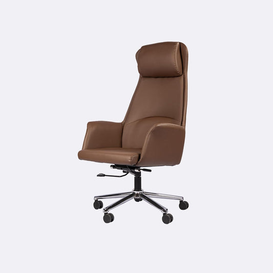 MFurn High Back Executive Office Chair β Brown Faux Leather Ergonomic Chair with Chrome Base
