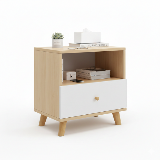 MHome Modern Single-Drawer Nightstand – Scandinavian Minimalist Design