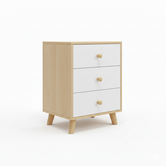 MHome 3-Drawer Wooden Nightstand – Bedroom Storage Chest