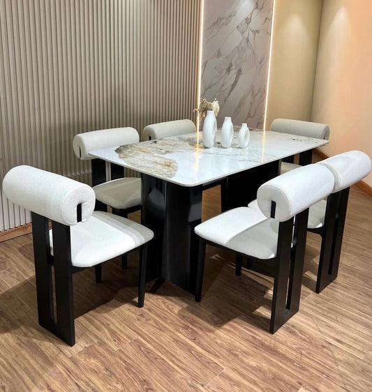 MFurn Monaco Marble Style Dining Set Inc 6 Chairs
