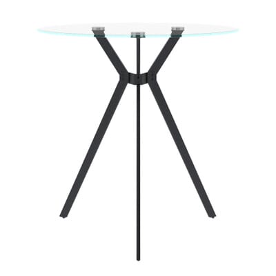 MFurn Round Clear Glass Top Bistro Table with Black Iron Trestle Legs