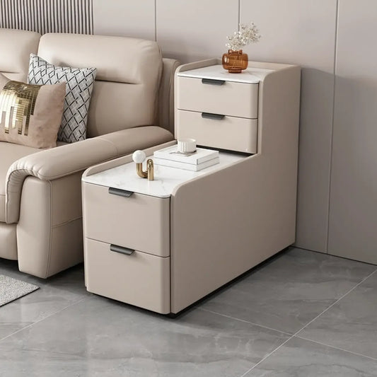 MFURN Modern Simple Style Rectangular White Sintered Stone Side Table with Block Base and 4 Drawers