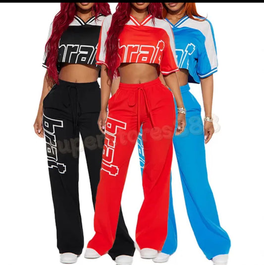 Women Trending Tracksuit Open Top, High Waisted Pants 2pc Set-Various Colours