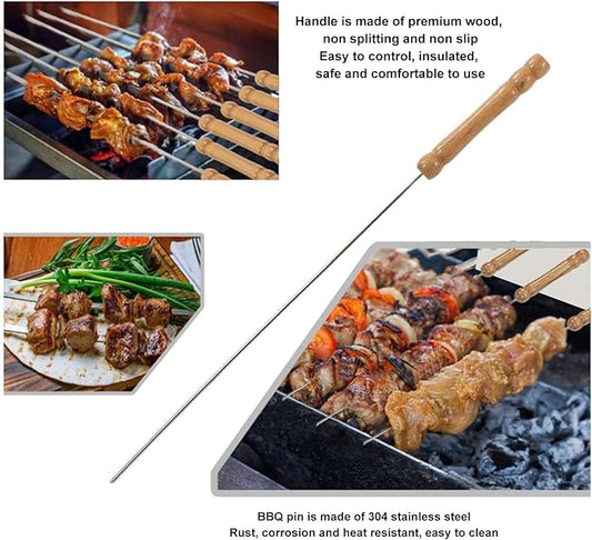 Wooden Handle Stainless Steel BBQ Skewers Set