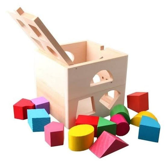 Wooden Cube Educational Toy Box with 13 Colorful Shapes