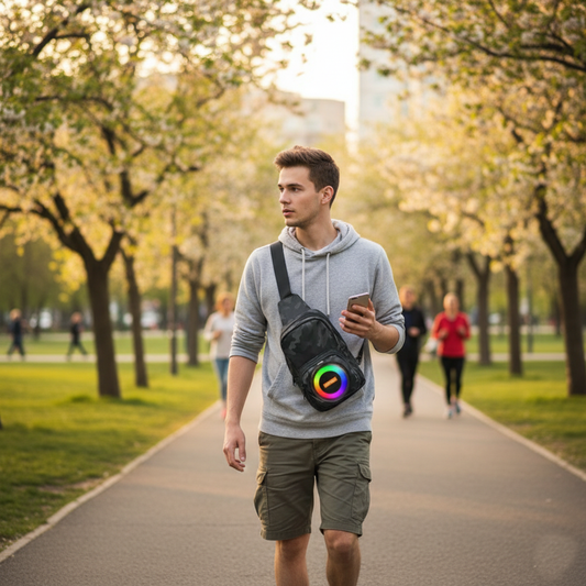 MTech Stylish Sling Bag With Built-In RGB Speaker (USB, Aux, SD, Type-C)