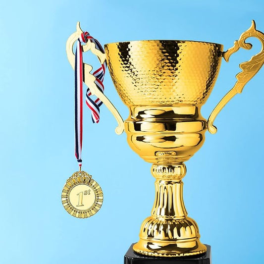 12 Pieces Metal Winner Gold Silver Bronze Award Medals Red White Blue Neck Ribbon,