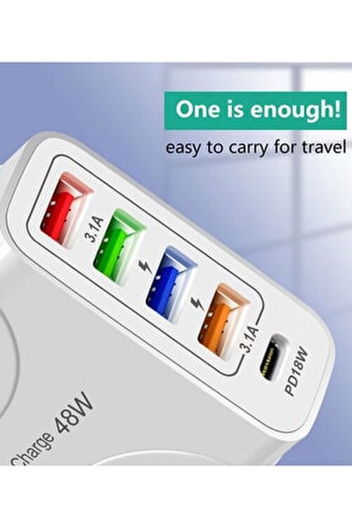 65W PD Fast Charging Charger - 3USB Ports/2 Type C - White