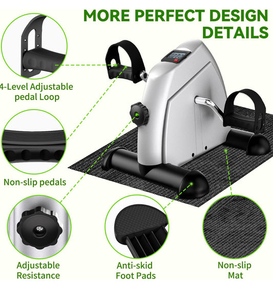 Under Desk Bike Pedal Exerciser: Leg Exerciser Mini Exercise Bike Portable Peddler for Seniors with LCD Display Sportneer Foot Cycle Arm & Leg Bike Pedals with Anti-Skid Mat for Office Home Silver