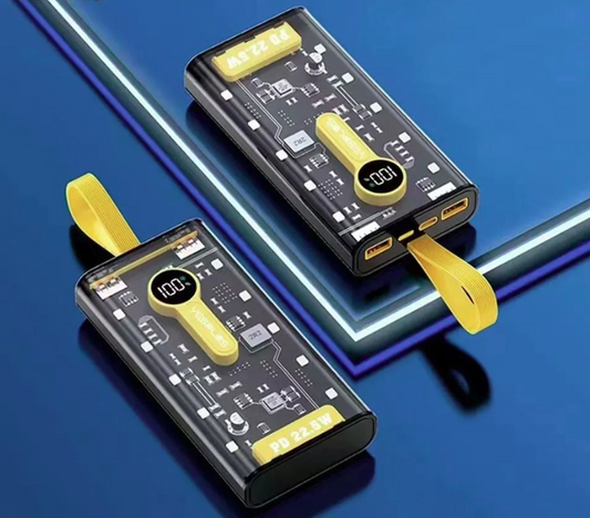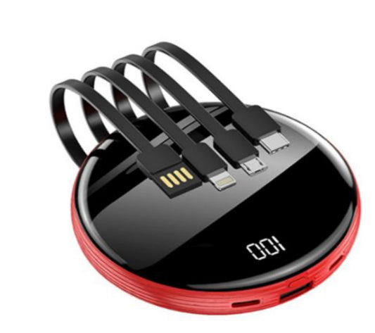 Portable 20,000 mAh Power Bank with Built-In Cables