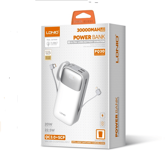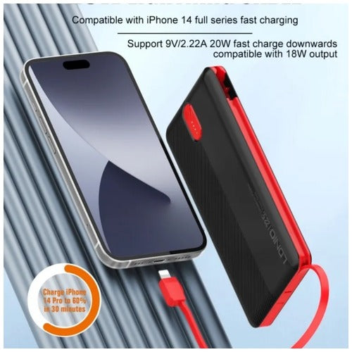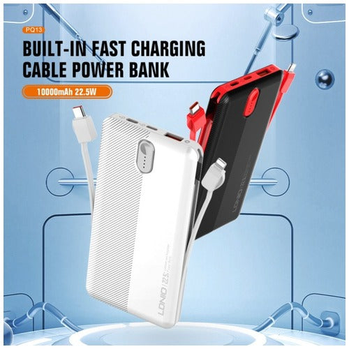 LDNIO PQ24 - 10000mAh Power Bank with Built-in Cables - 22.5W MAX - BLACK