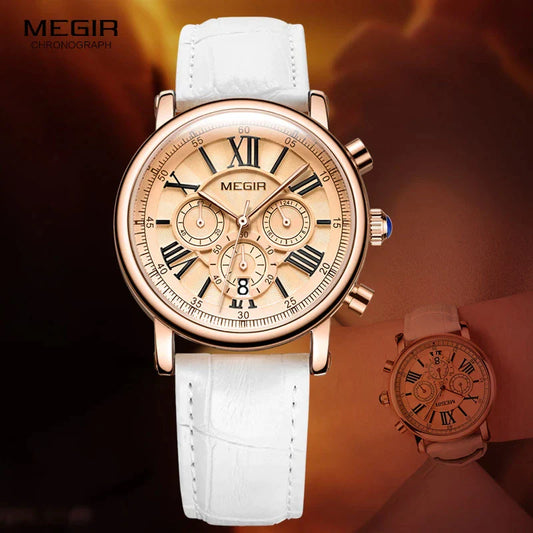 Megir Top Luxury Brand Watch Famous Fashion Dress Cool Women Quartz Watches Waterproof Leather Wristwatch For Female