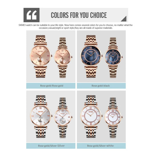 SKMEI Simple Roman Numeral Dial Metal Belt Quartz Watch for Couples 9198-Various Options