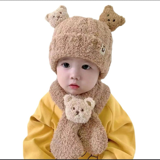 Kids' Hat And Scarf Set, Thick Warm Plush Cap For Baby Boys And Girls, Autumn And Winter