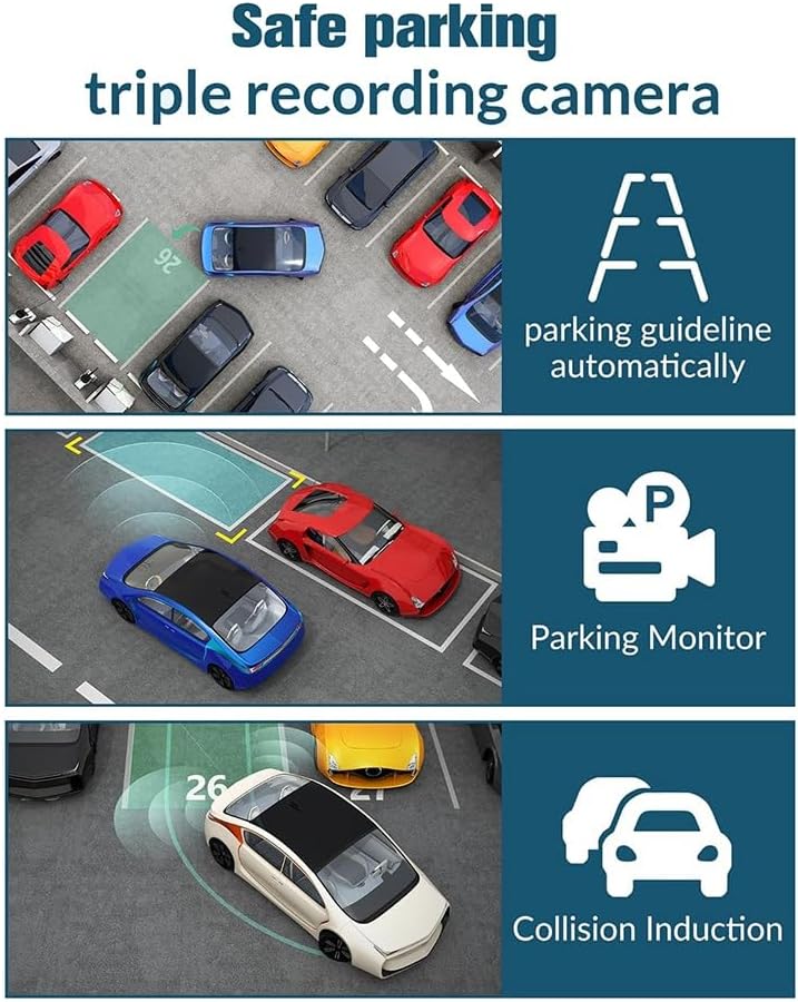 1080P 3-Lens Car Dash Camera – Front, Rear & Inside DVR with Night Vision, G-Sensor & 24H Parking Record