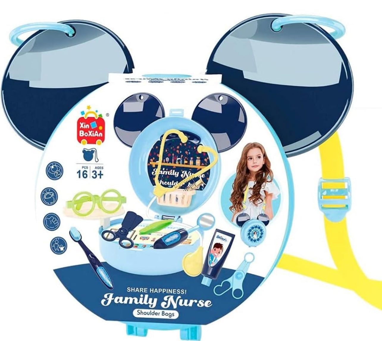 Bag Medical Briefcase, set with 16 pieces. Blue color. Kids love this as a gift, they usually are passionate about doctor toys that increase their fun and also their creativity. Suitable for over 3 years Dimensions: 27x20x10 cm