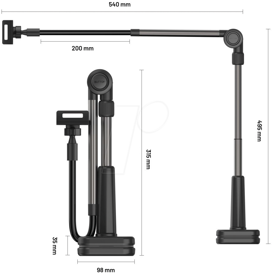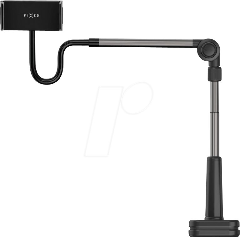 Phone mount designed to be used on any desk, home or office. Enjoy your favourite TV series in bed while freeing your hands and simultaneously offering better protection for your neck and posture. The holder offers a thickened, widened base which allows for easy attachment to bed edges and table corners. The wide clip firmly fits smartphones.