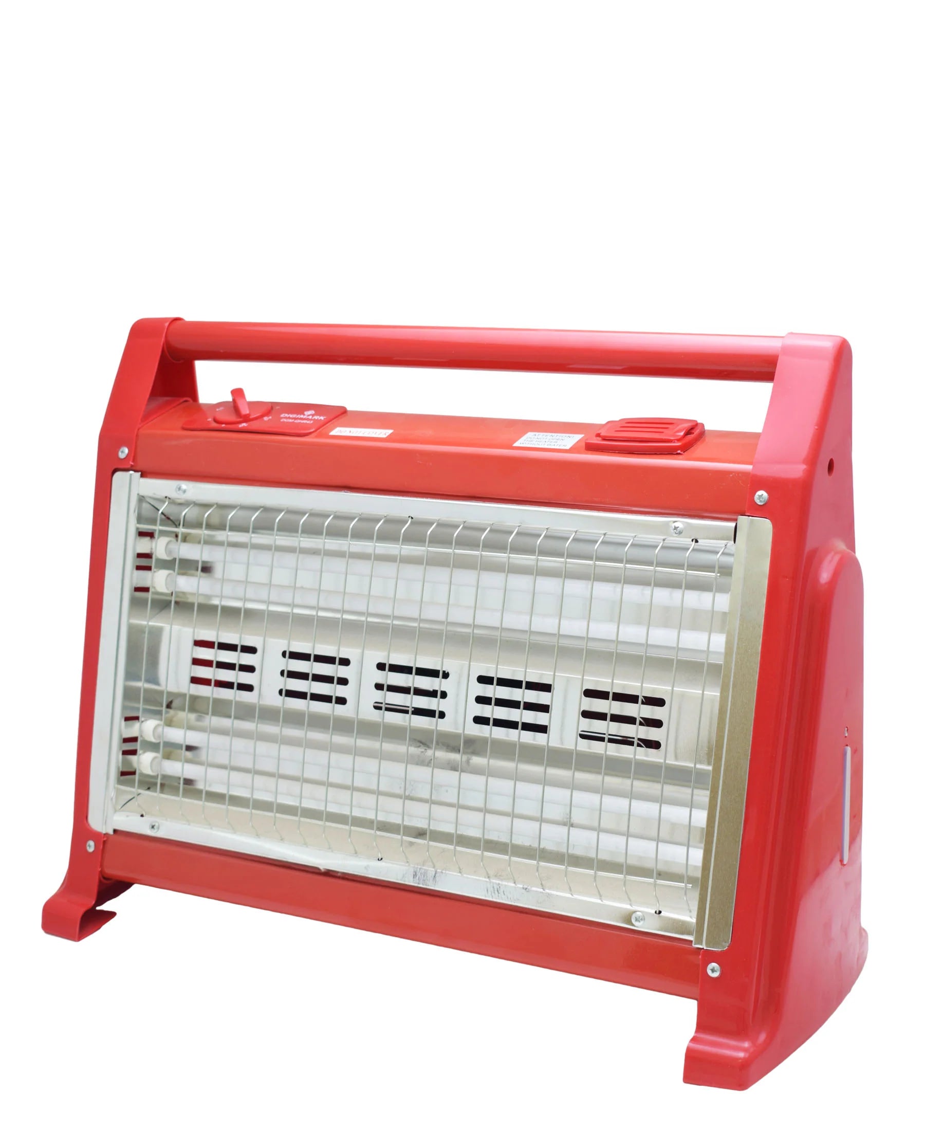 The image shows a Digimark DGM-QHR43 electric quartz heater, which is a type of radiant heater that uses quartz tubes to generate heat. This type of heater is designed for indoor use and is portable.