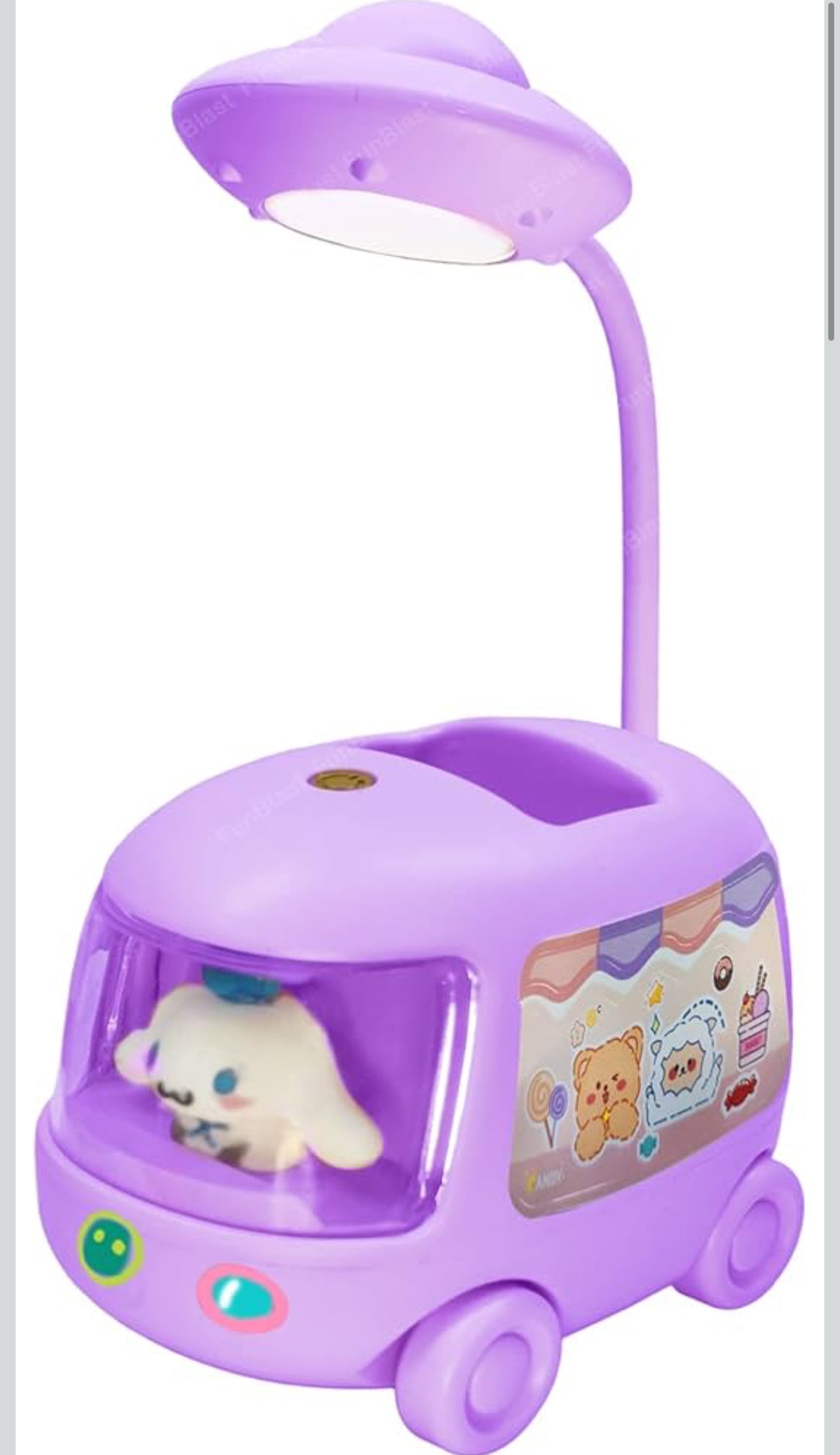 - 3 in 1 Multifunctional Study Desk LED Lamp β DIY Space Bus rechargeable desk lamp and Pen Holder, DIY Stickers with Moving Wheels Multipurpose Table Lamp for Kids.