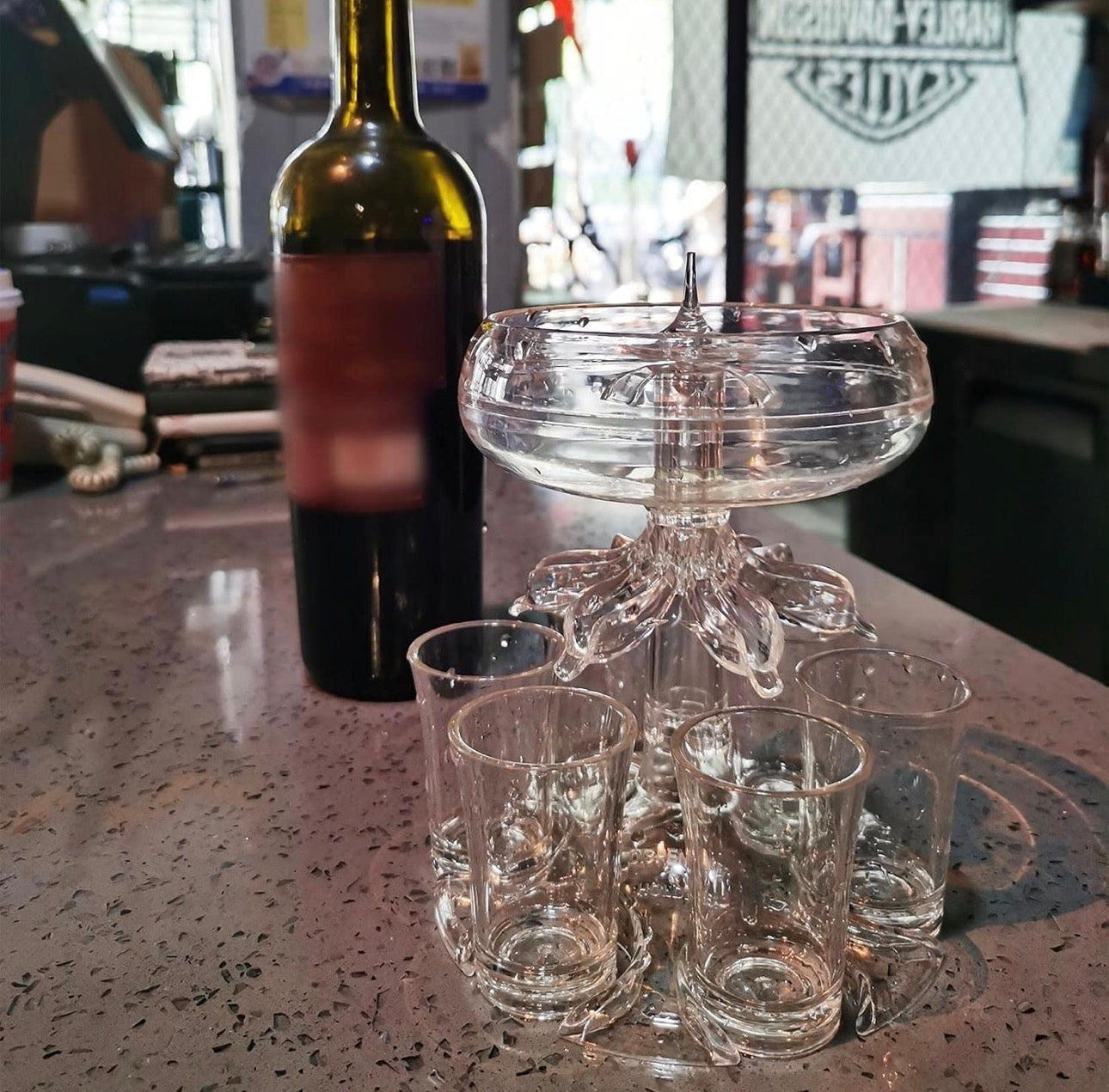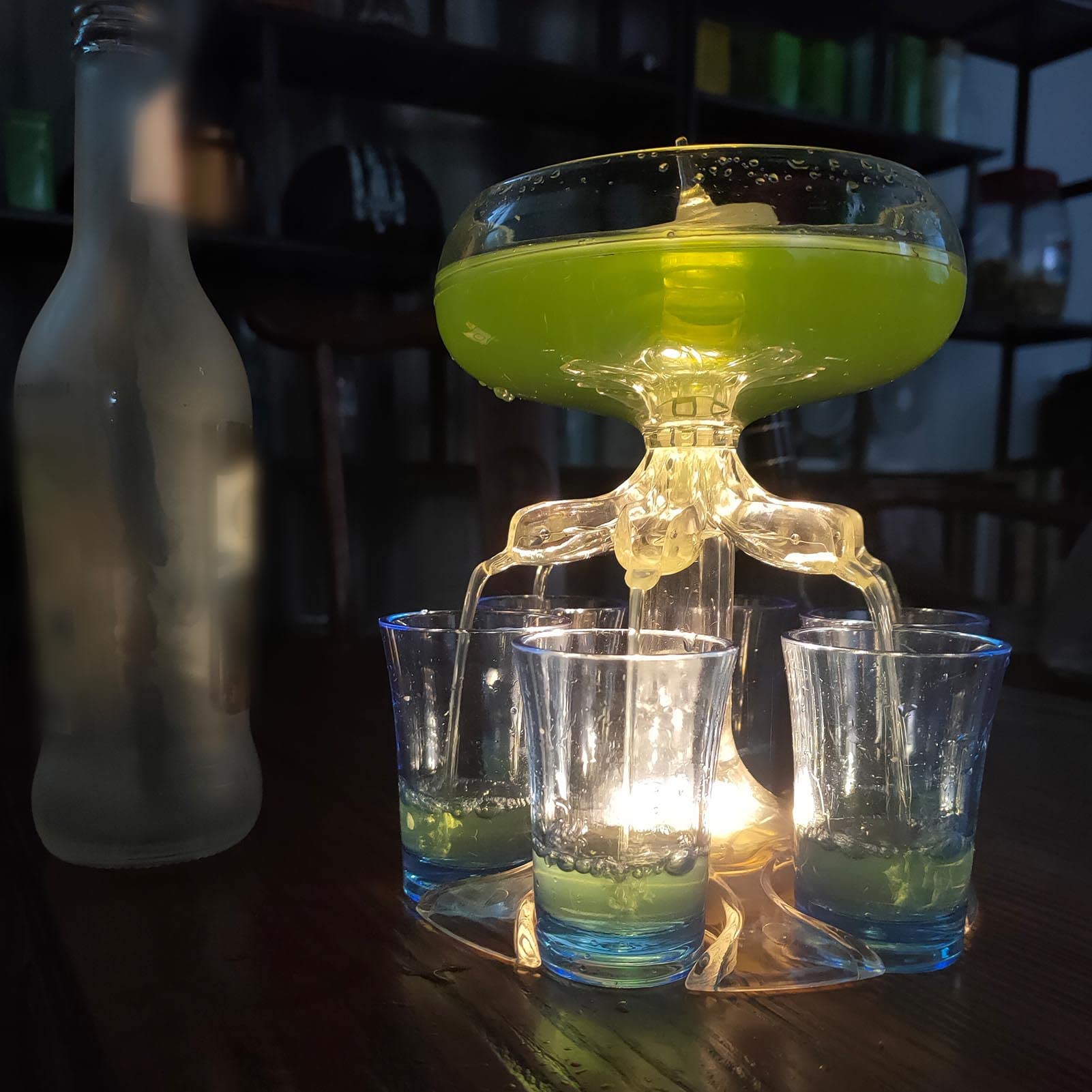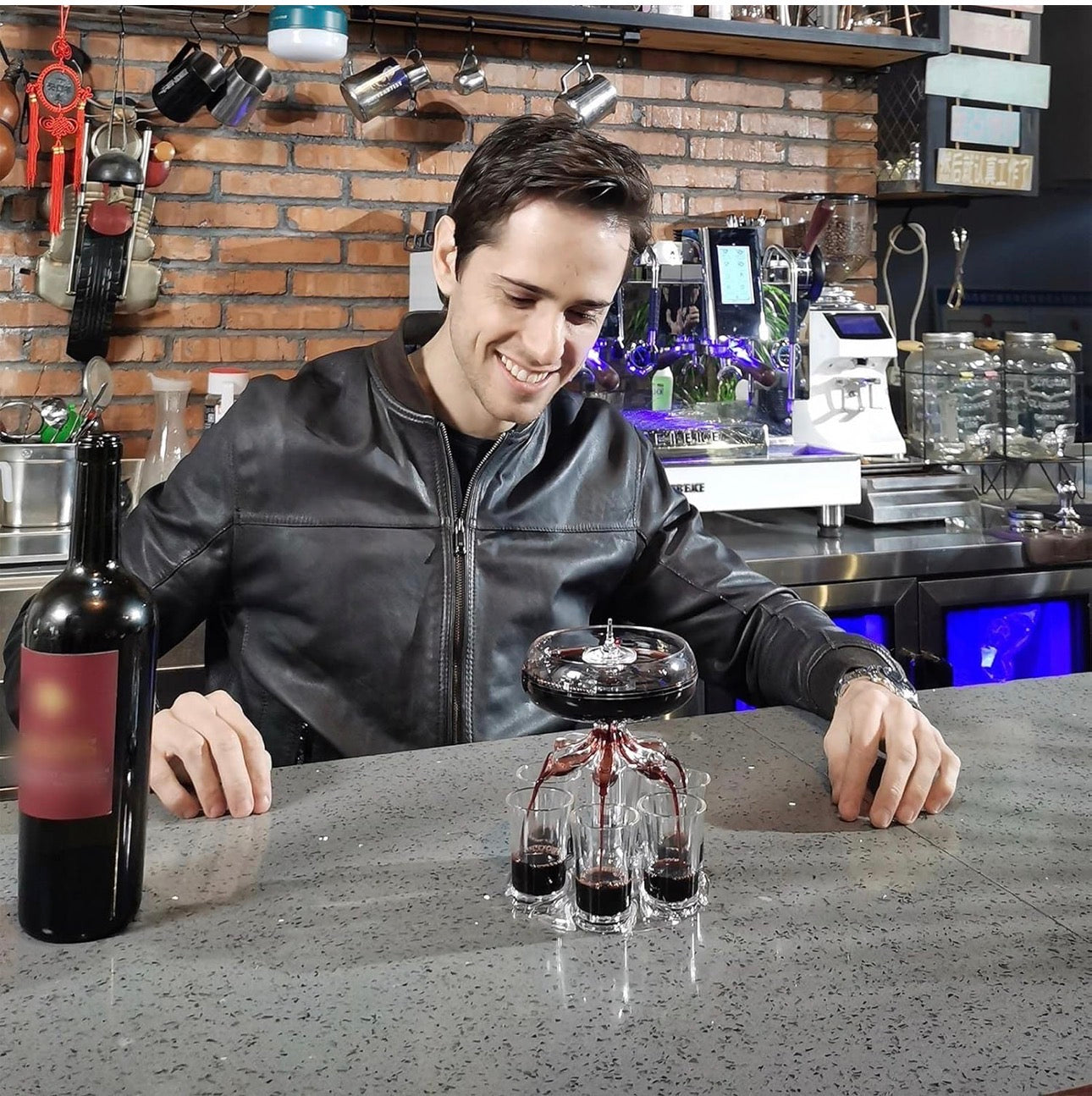 Drink Dispenser with 6 Shot Glasses and Holder Set,Shot Glass Dispenser with 2 Lighting Effects,PlexiglassTouchless Shot Pourer for Beverage, Liquor, and Cocktai, Home Bar Accessories