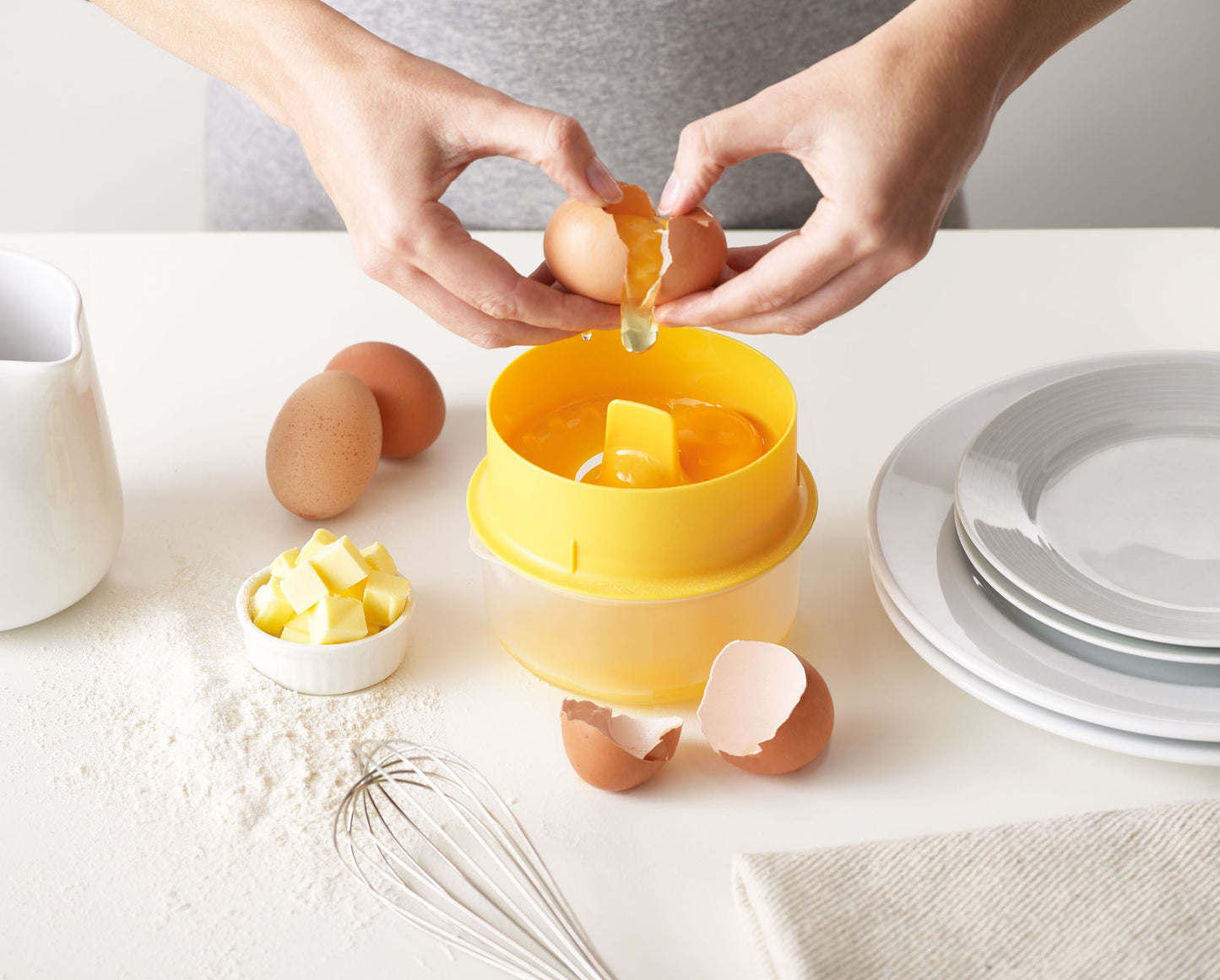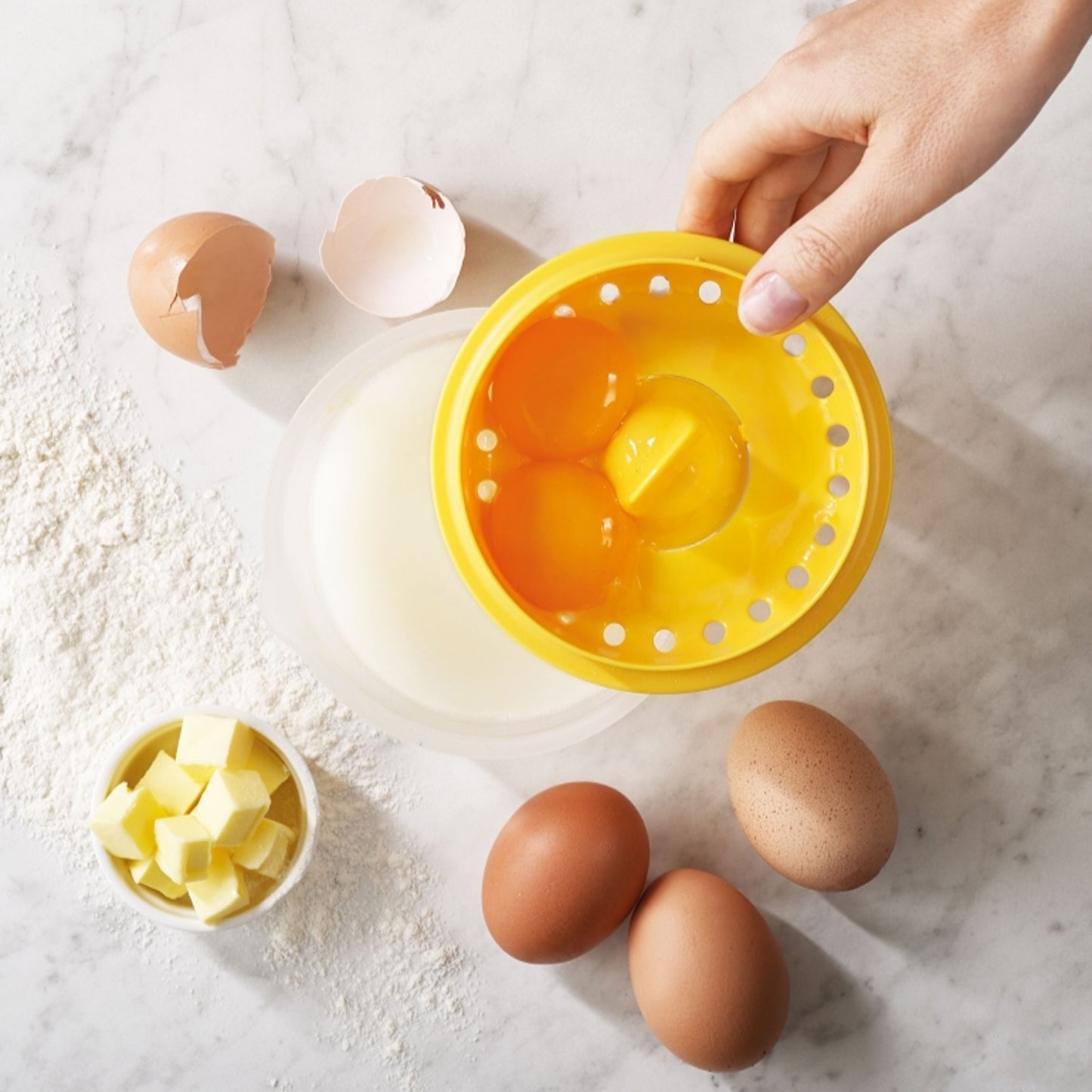 1 Γ Egg Yolk Separator with Integrated Cracker Lid