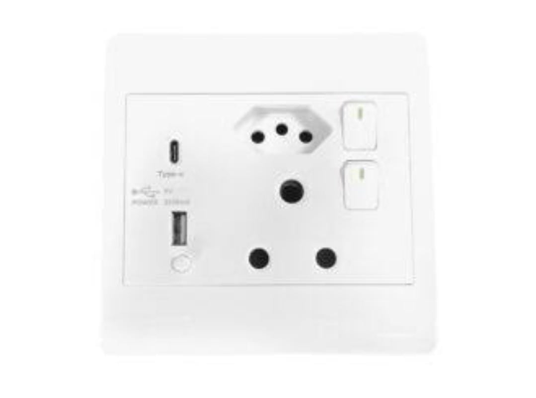 Electrical Switched Socket 15amp - Euro+USB+Type C