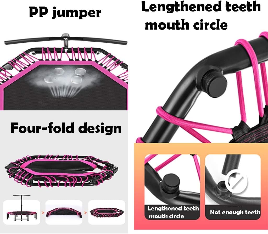 Heavy-Duty 110cm Fitness Trampoline with Adjustable Handlebar β Silent Bungee Rebounder for Adults & Kids, 200KG Weight Capacity