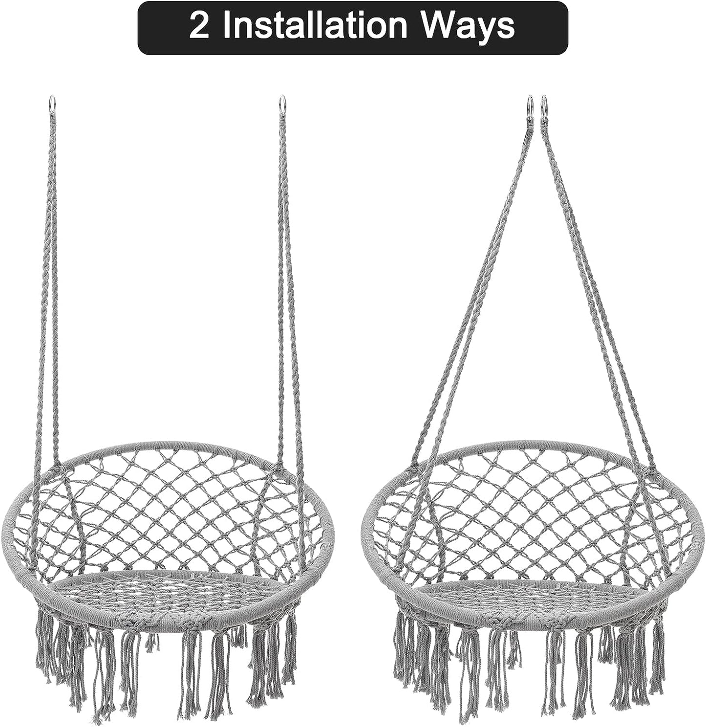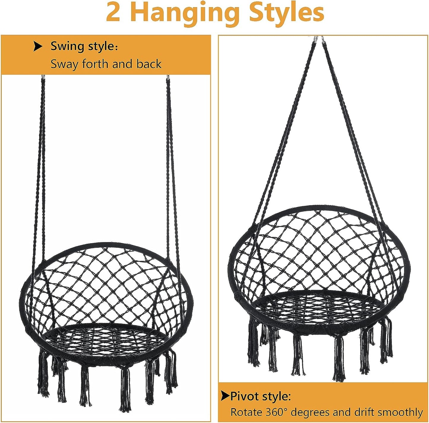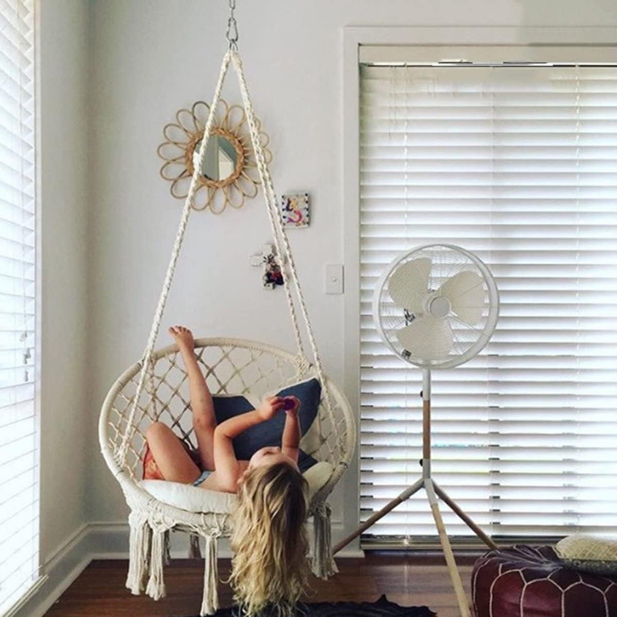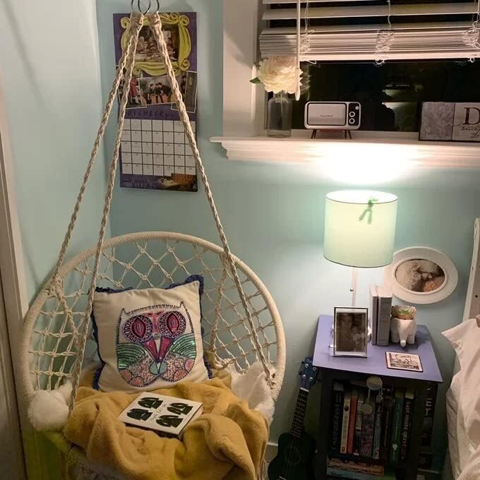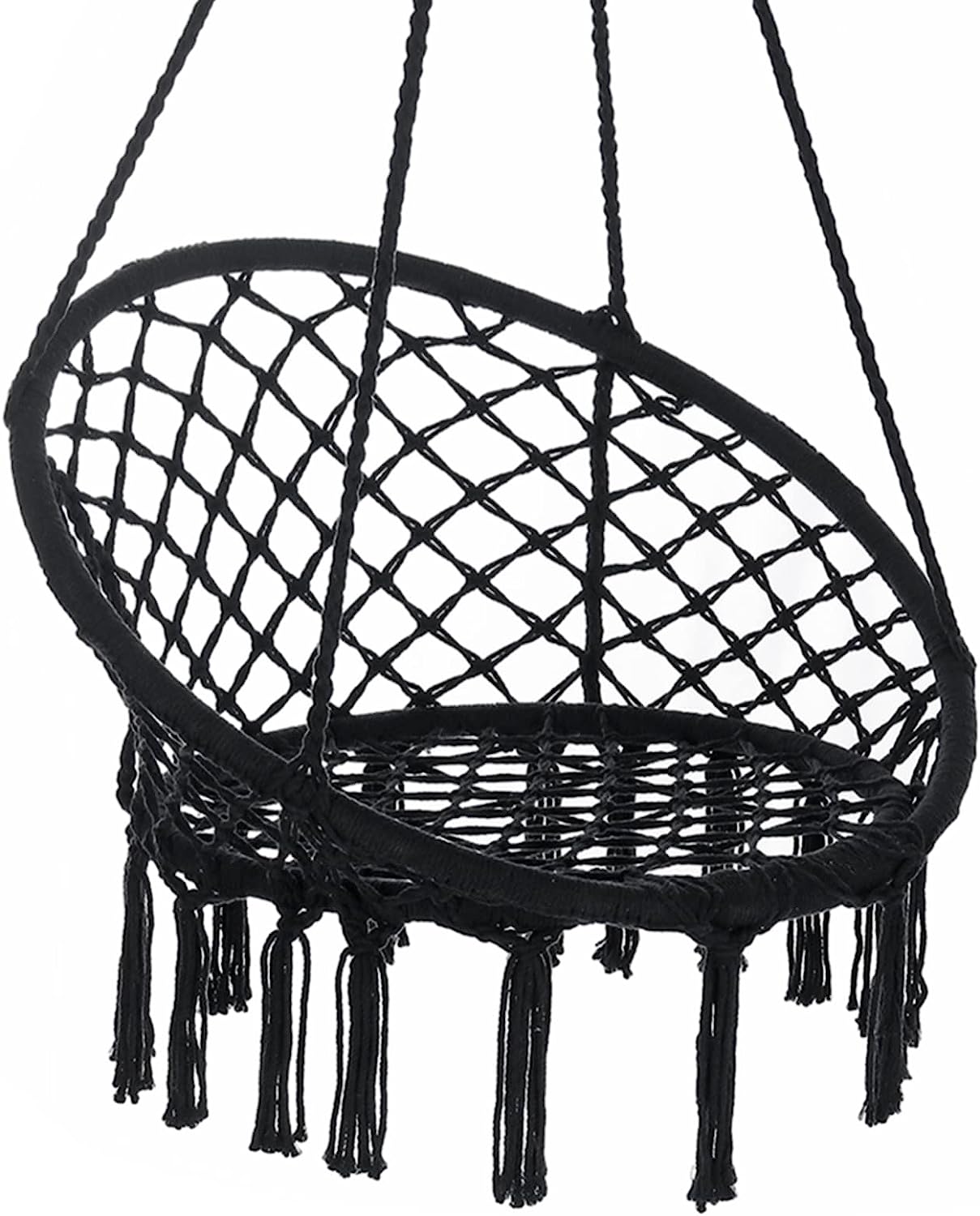 - Firmly woven thick cotton rope with excellent metal framing ensures the swing chair is sturdy and supports up to 330 pounds.