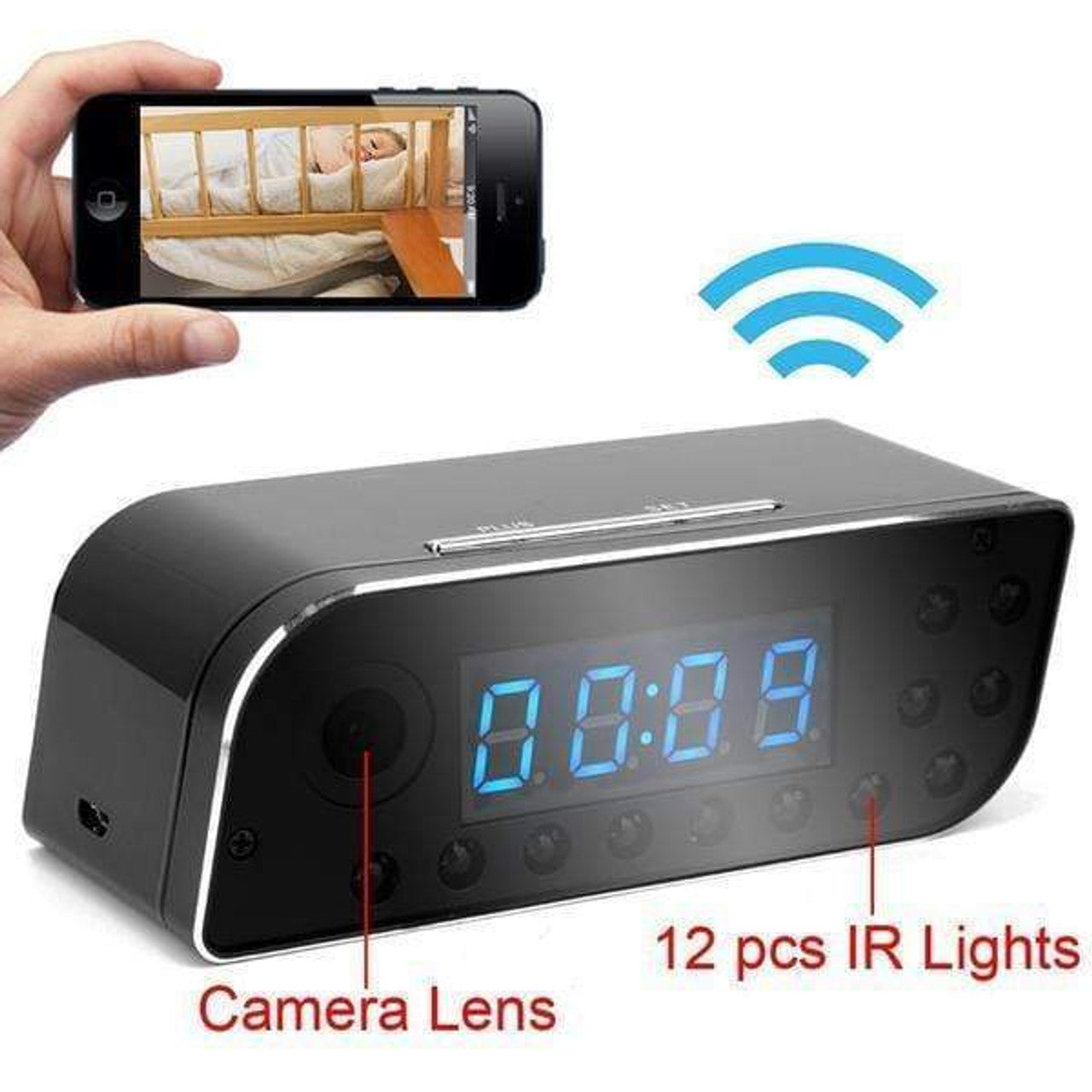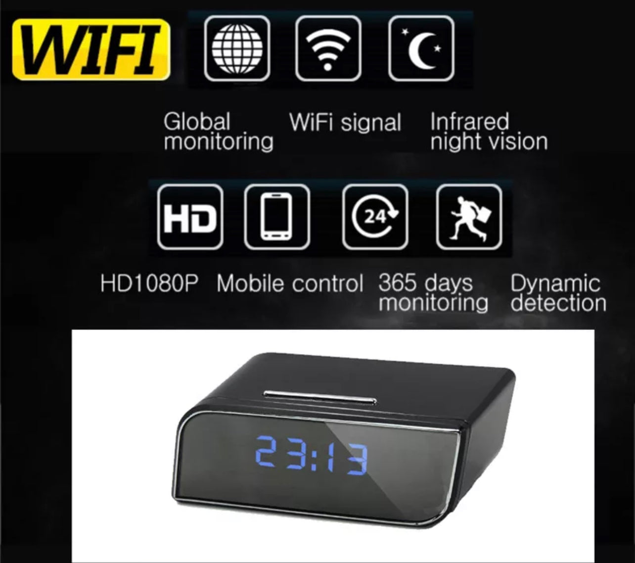 Your HD clock is a P2P WIFI camera which allows you to view remotely from anywhere you have an internet connection. With the downloadable app you can control recording functions remotely. It's also very easy to operate and to set up on your WIFI networks.