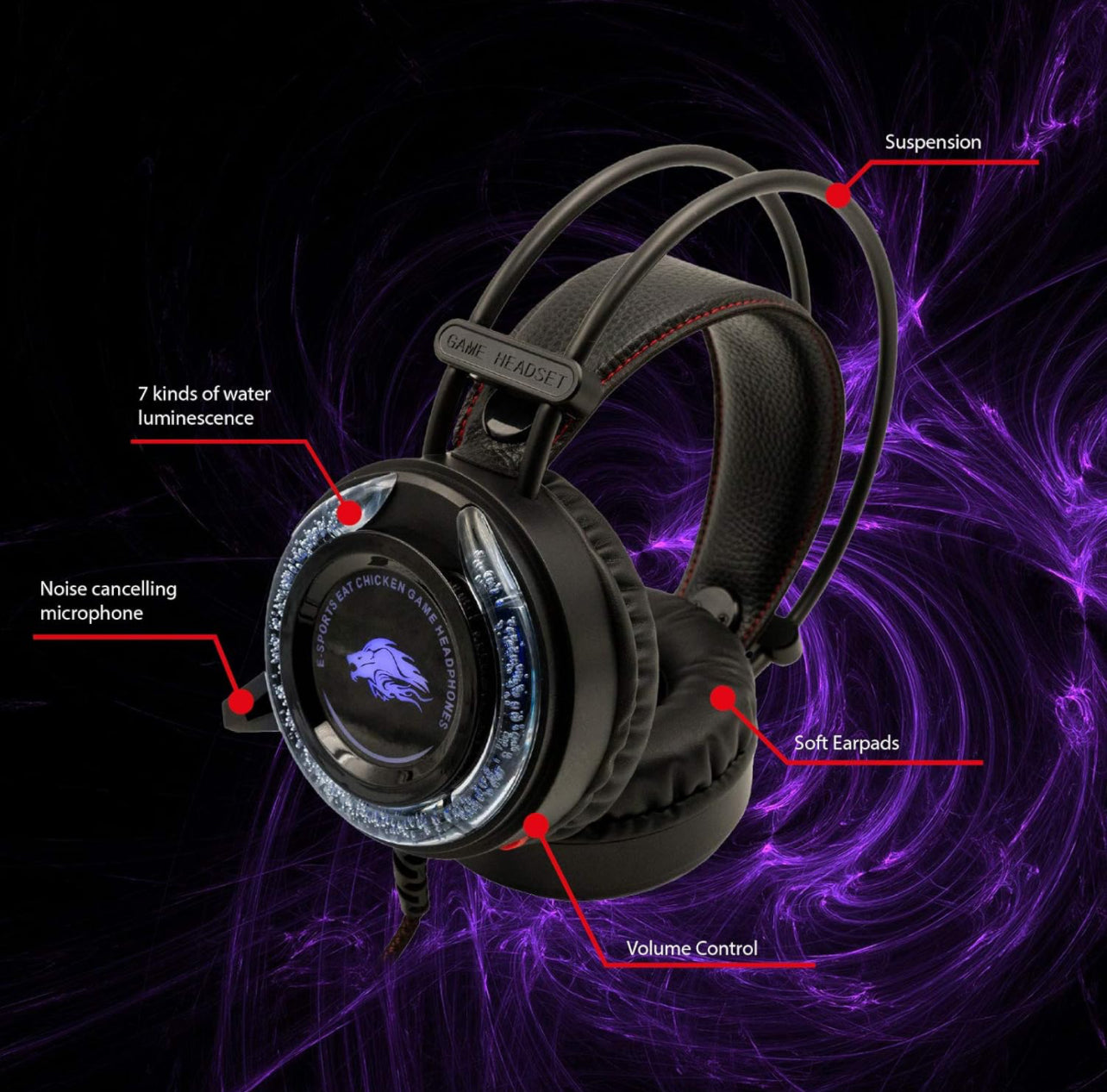 HIGH QUALITY SURROUND STEREO 7 KIND OF WATER LUMINESCENE NOISE CANCELLING MICROPHONE KNITTED LEATHER SEAM ANTI-VIOLENCE MEMORY HEAD BEAM HIGH PROTEIN LEATHER EARMUFFS PRODUCT FEATURES : This product uses dual -audio engine ,double -frequency multi-point coincidence, three-dimensional surround , high - quality sound produced by world - class tuners ; high-protein memory cotton , soft leat her earmuffs , comfortable air permeability and reduce external noise , using high - density steel strip head wear design , light and tough , not easy to deform and break .