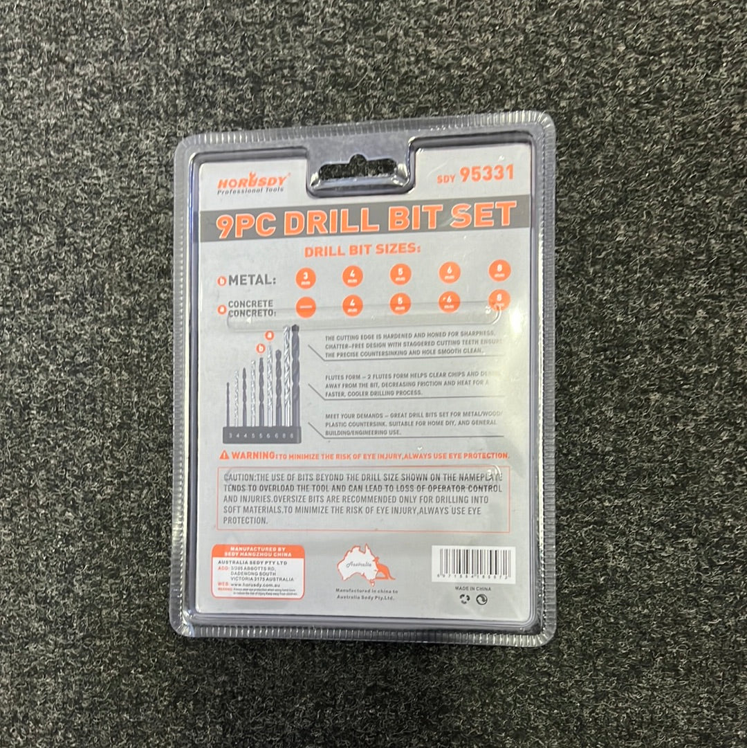 Horusdy Combination Drill Set 9pc For Metal & Wood