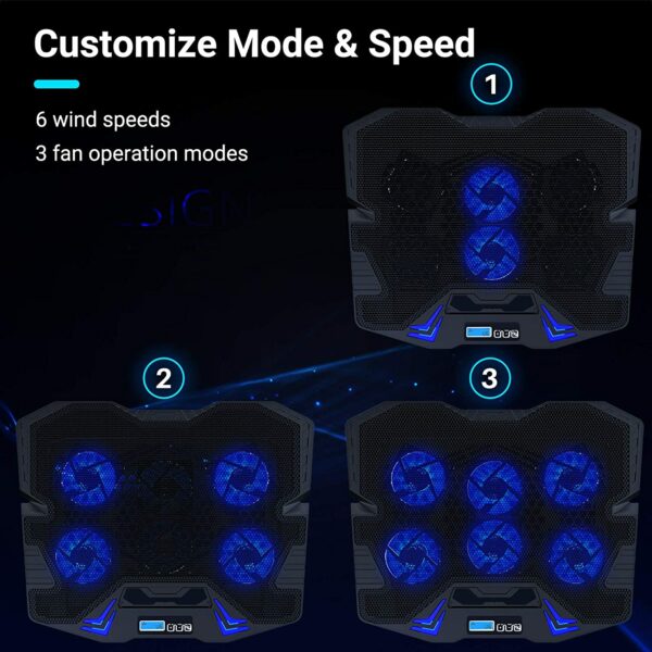 -The laptop fan cooling pad provides 6 wind speeds and 3 fan operation modes.