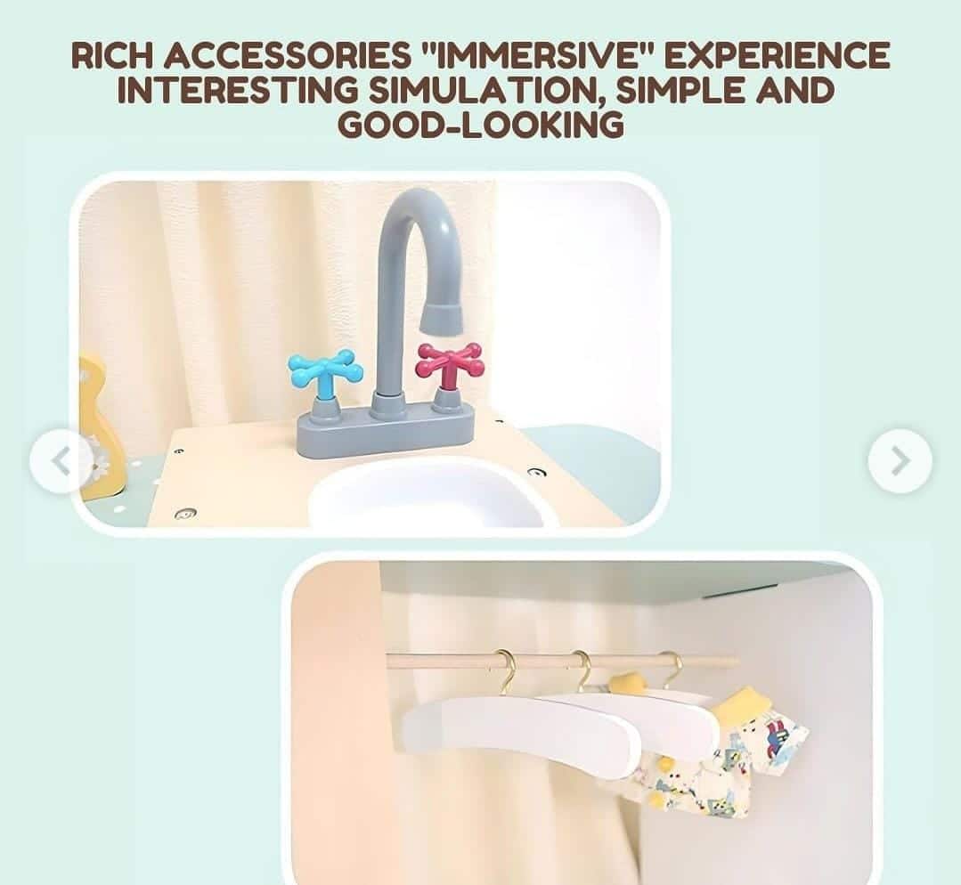 β The Pretend Play Washing Machine features a realistic effect, get basic knowledge about washing, and playing with friends.