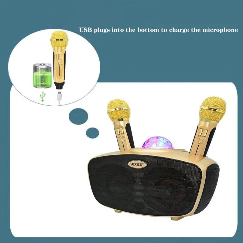Karaoke Microphone Speaker with 2*Microphone LED MIC Bluetooth Karaoke Home System Portable Microphone Speaker
