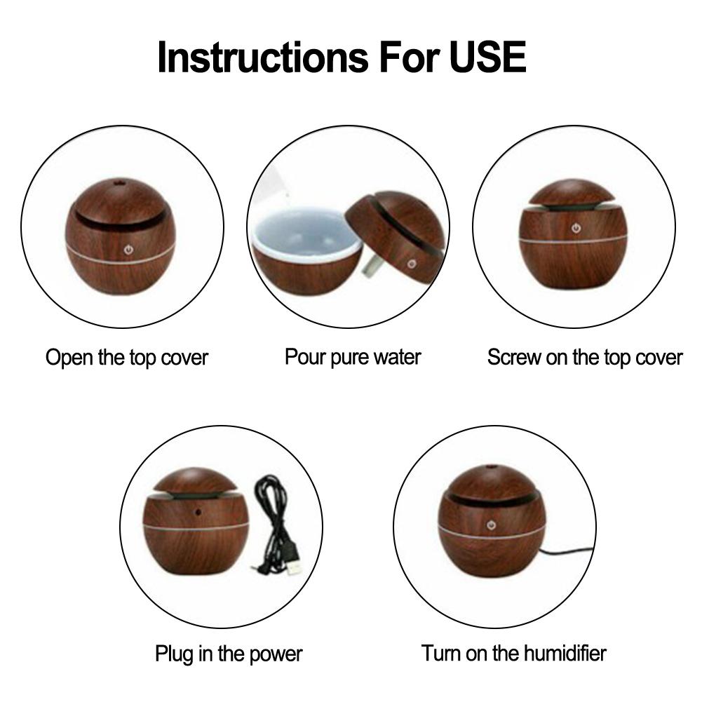 The natural wood effect creates a perfect home decoration ideal in any room in the house or office. Powered by USB that can be plugged into a phone chargers or laptops. It can also be used as a simple humidifier. Safe and clean.