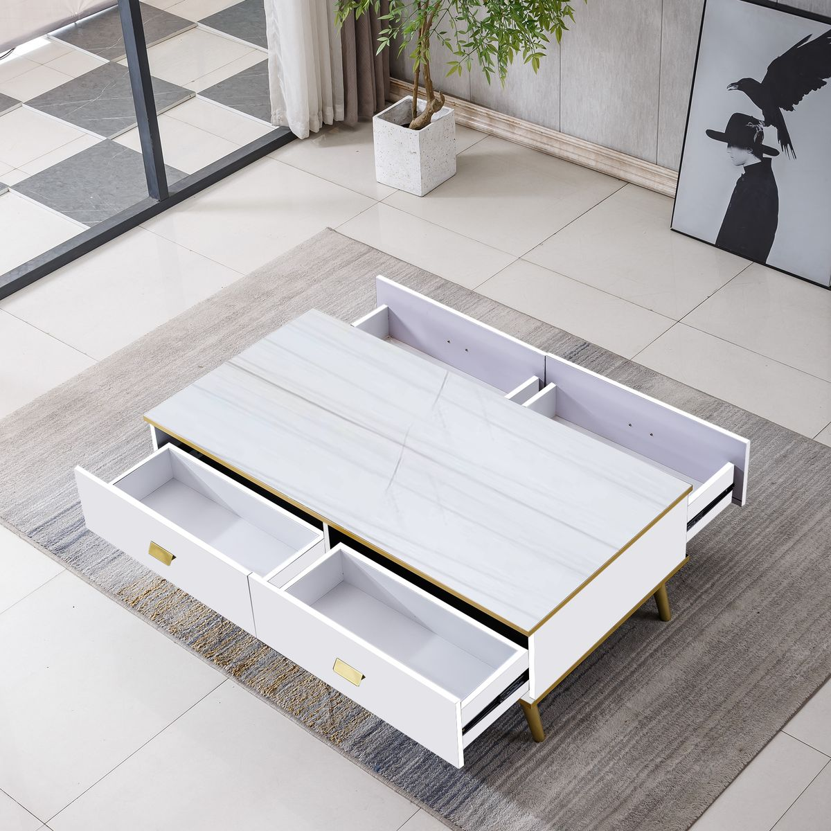 - There are four drawers under the table, providing plenty of storage space, remote controls, game handles, books, blankets, etc. can all be orderly accommodated and protect against dust while keeping frequently used items within easy reach.