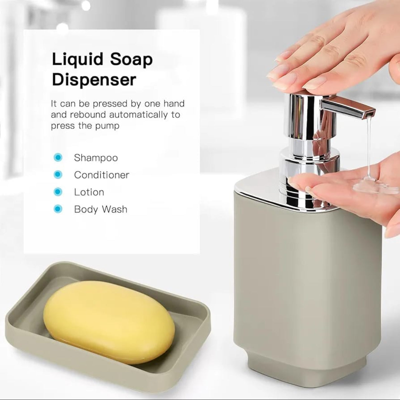 The 6 Pieces Perfect Bathroom Set with GIFT 】: This set contains seven pieces -1 plastic cup, 1 toothbrush holder, 1 lotion dispenser,1 soap dish, 1 medium trash can and 1 toilet brush. One set meets multiple needs.