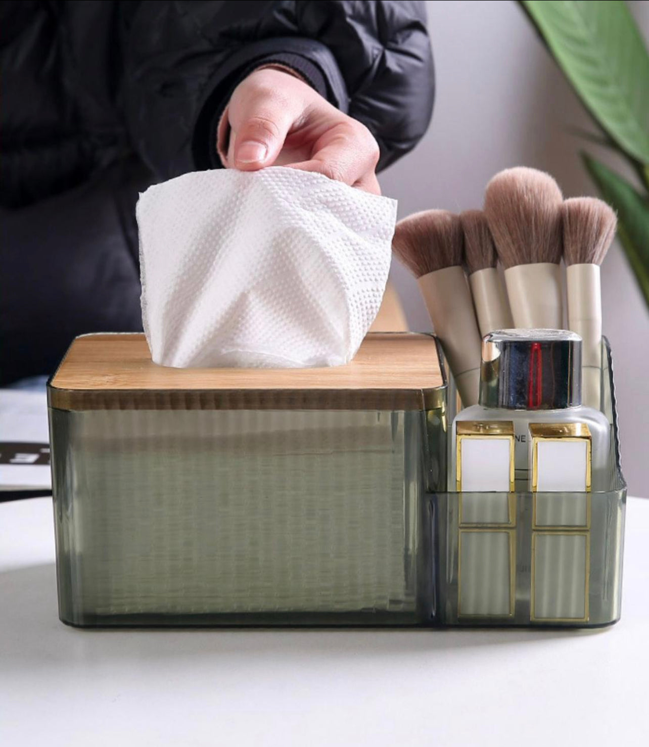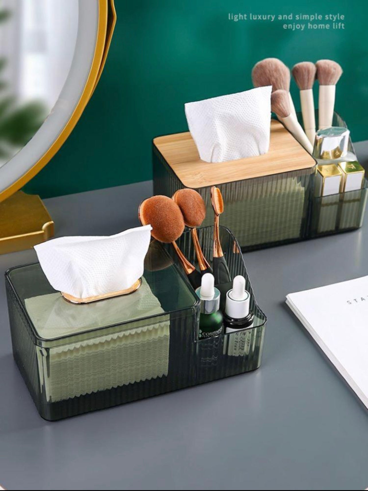 2 x compartments that may be used to store cotton pads/ swabs/ lipstick/ beauty blenders/ remotes etc