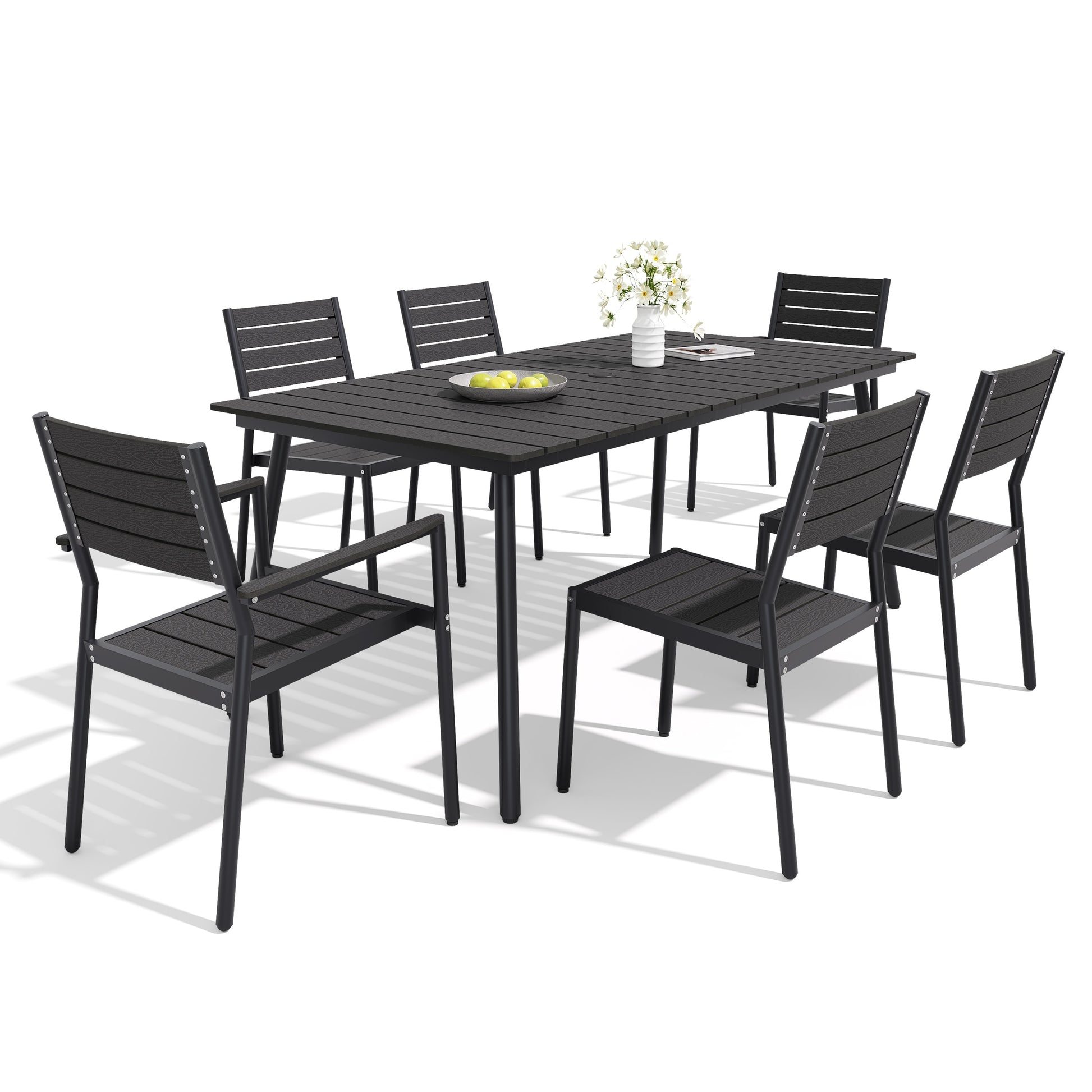 MFURN 7-Piece Outdoor Patio Dining Set with Polywood Table & Chairs