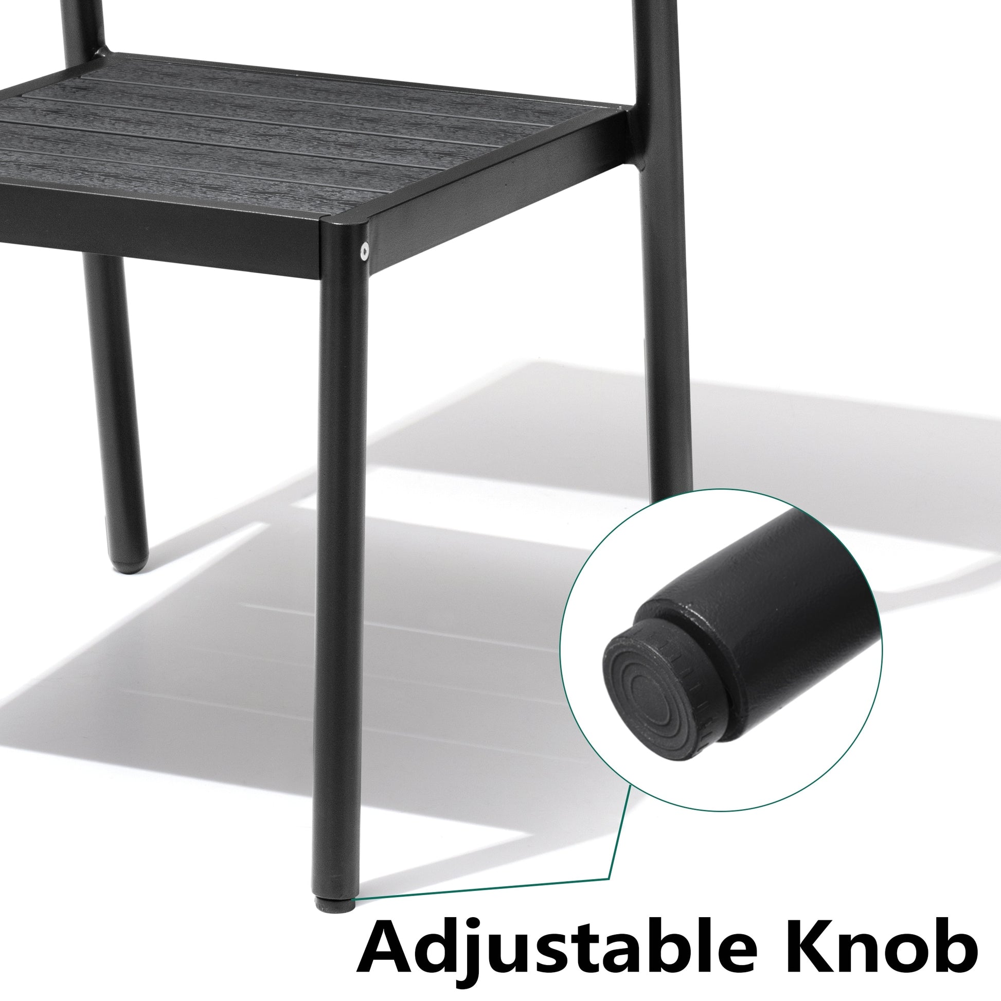 With its contemporary grey finish and clean design, this patio dining set complements both residential and commercial spaces such as gardens, terraces, balconies, gazebos, and outdoor restaurant seating areas.