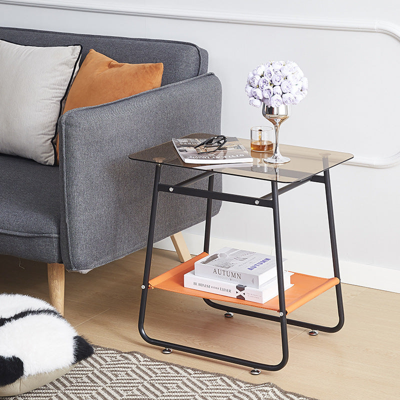Simple rectangular side table: The combination of glass tubes and gold and black steel is simple and elegant, and the glass comes in different colors, making the overall look less monotonous; the second layer uses orange leather shelves to add a soft feel; we have designed 6 colors for you to choose from to meet different needs Double-layer storage side table: The side table has a double-layer design to meet your storage needs; for example: books, magazines, remote controls, coffee cups, alarm clocks, desk lamps, glasses, etc.; very suitable for bedrooms, living rooms, study rooms, lounges, balconies, offices, dormitories and other occasions