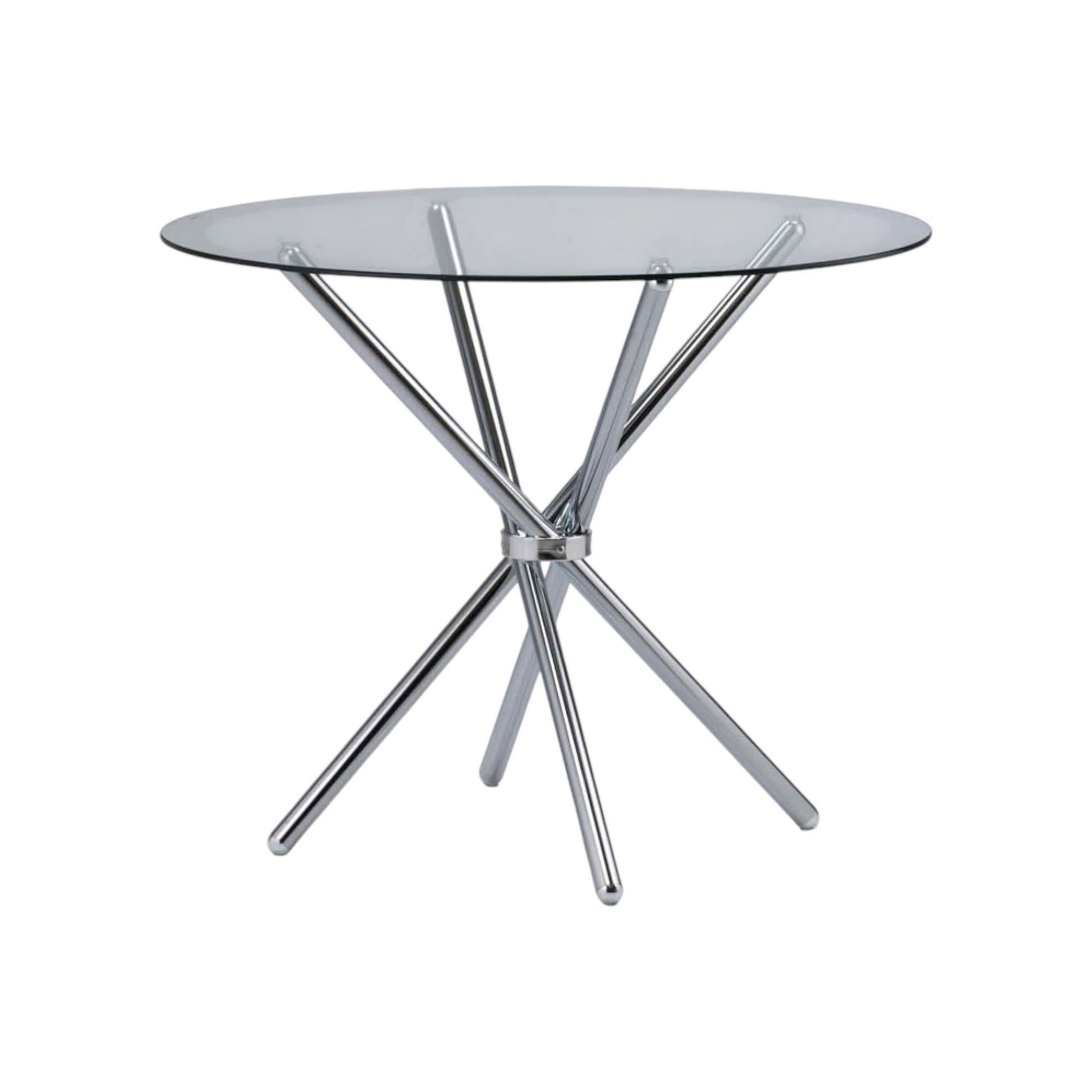 The round glass surface enhances openness and sophistication, while the sturdy cross-leg design provides excellent stability. Its space-saving size makes it ideal for both residential and commercial use, offering ample room for family meals or social gatherings without overwhelming the space.