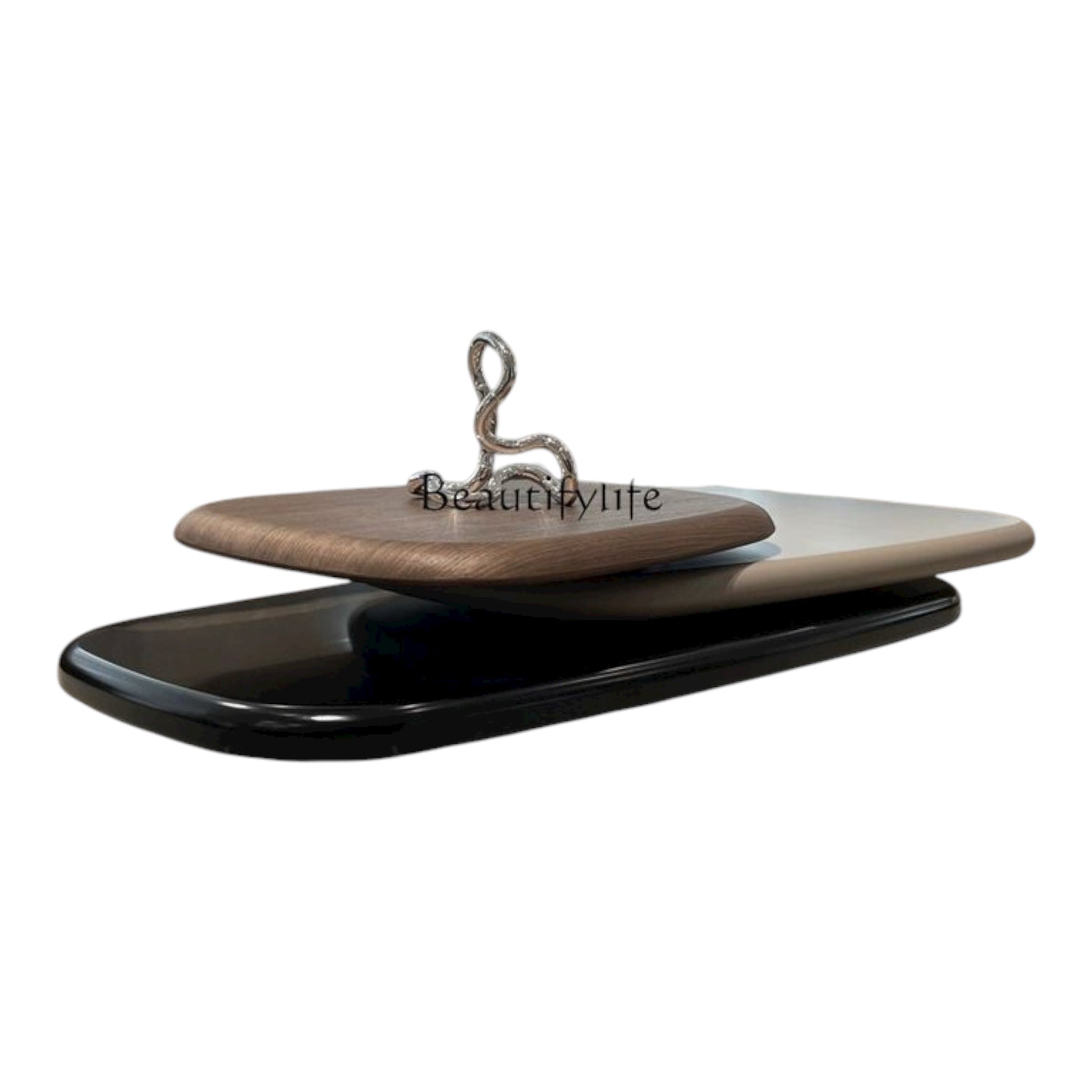 MFurn Italian Modern Simple Villa Coffee Table Minimalist Walnut Veneer Revolving Extendable Low Tea Table Furniture For Living Room-PreOrder Now Available