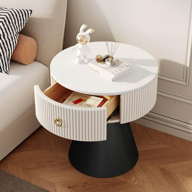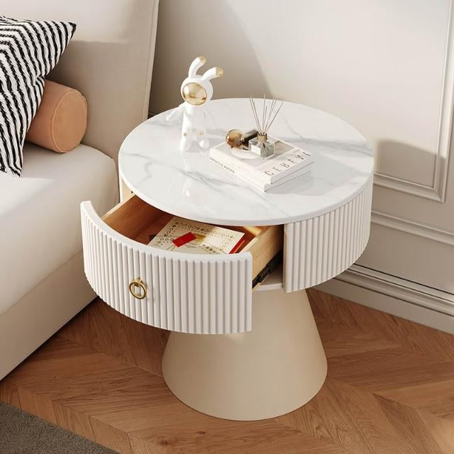 MFurn Round Nightstands with Porcelain Slab Tabletop Modern Nightstand with Storage Round Accent Table Bedside Table Sofa Side Table for Living Room