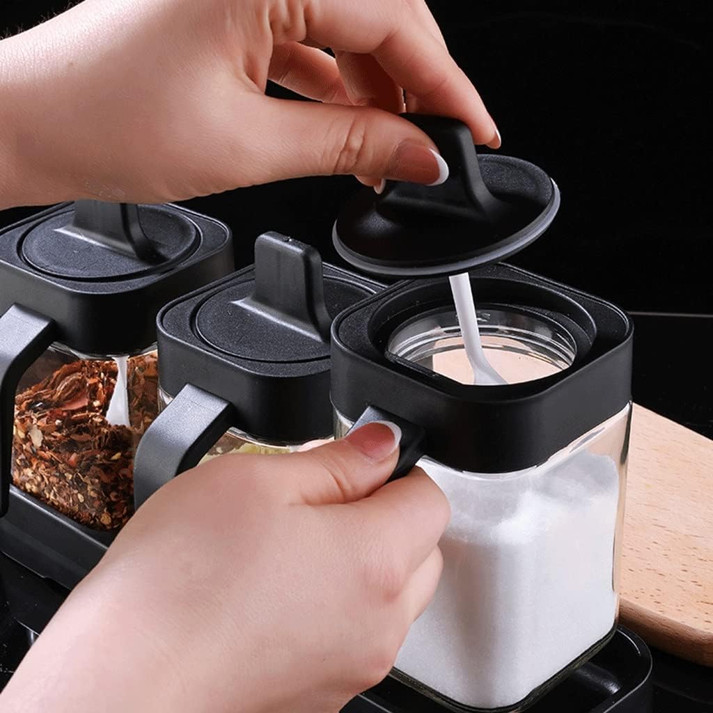 MHome 3-Piece Heat-Resistant Glass Spice Jar Set with Storage Box