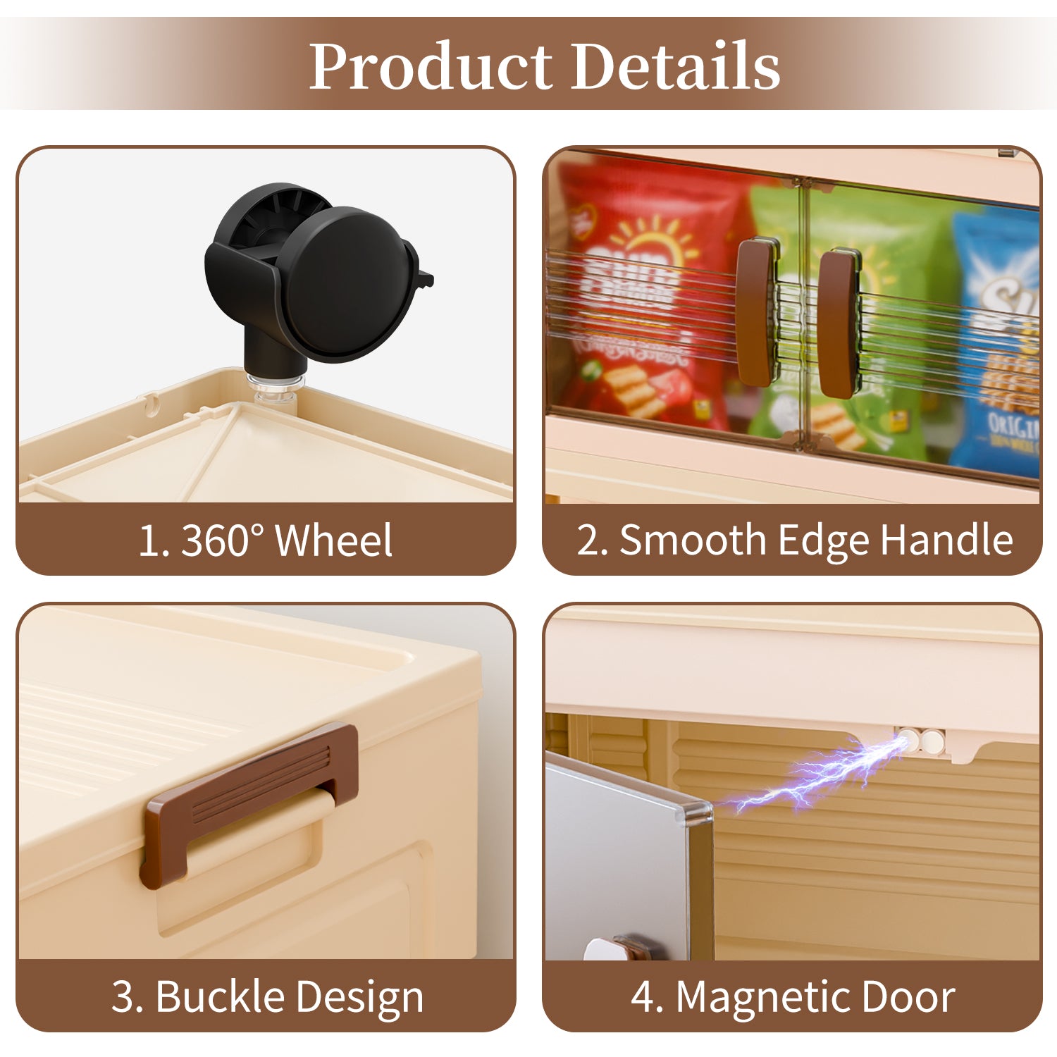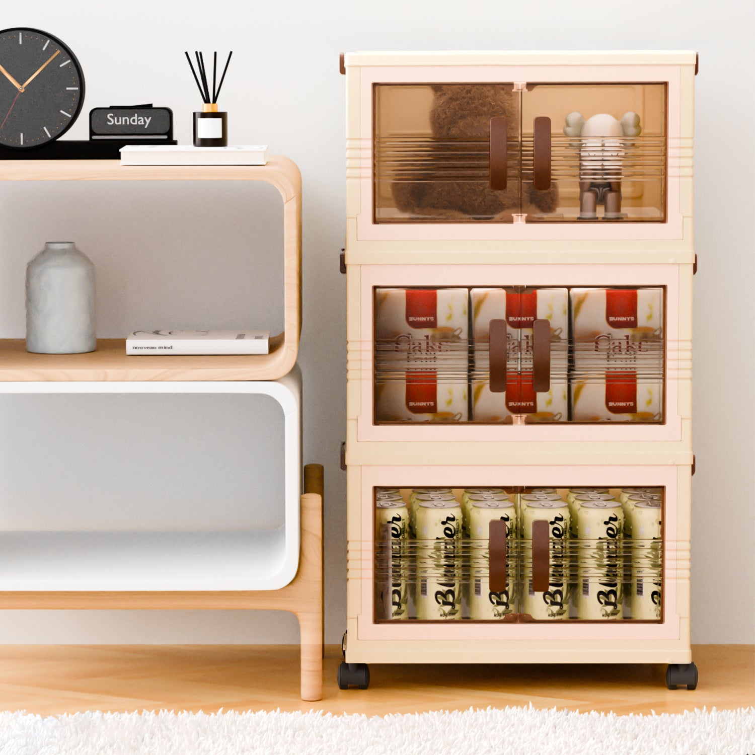 MHome 4-Tier Collapsible Storage Bins with Magnetic Doors - Plastic Folding Storage Cabinet with Wheels