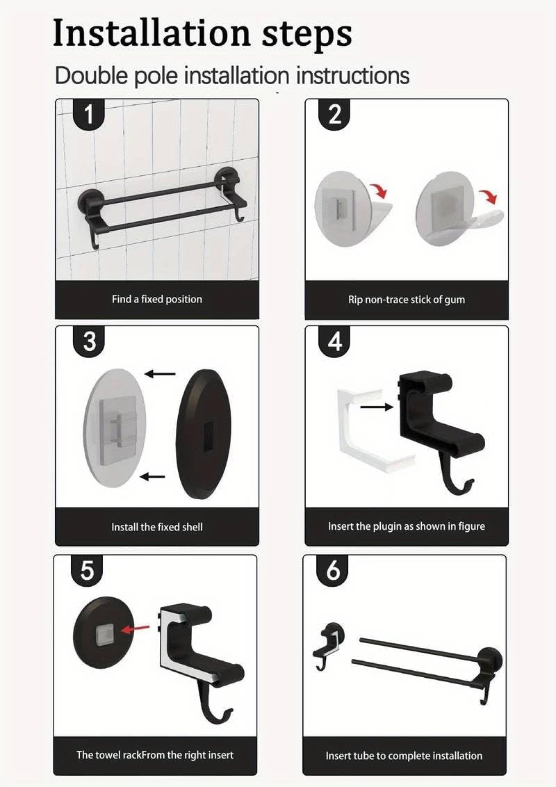 Keep your bathroom neat, organized, and stylish with the MHome Nail-Free Double Pole Towel Rack. Designed with strong self-adhesive installation, durable materials, and multipurpose functionality, this rack is perfect for maximizing space while keeping towels and essentials within easy reach.