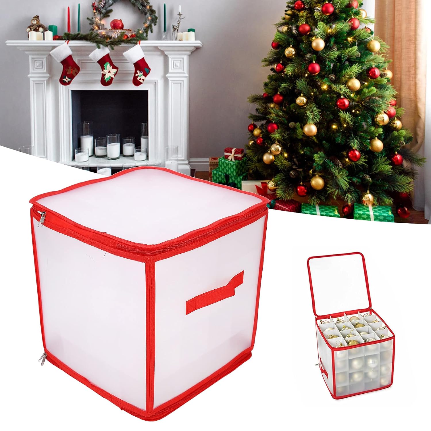MHome Christmas Ornament Storage Box – Red Trim