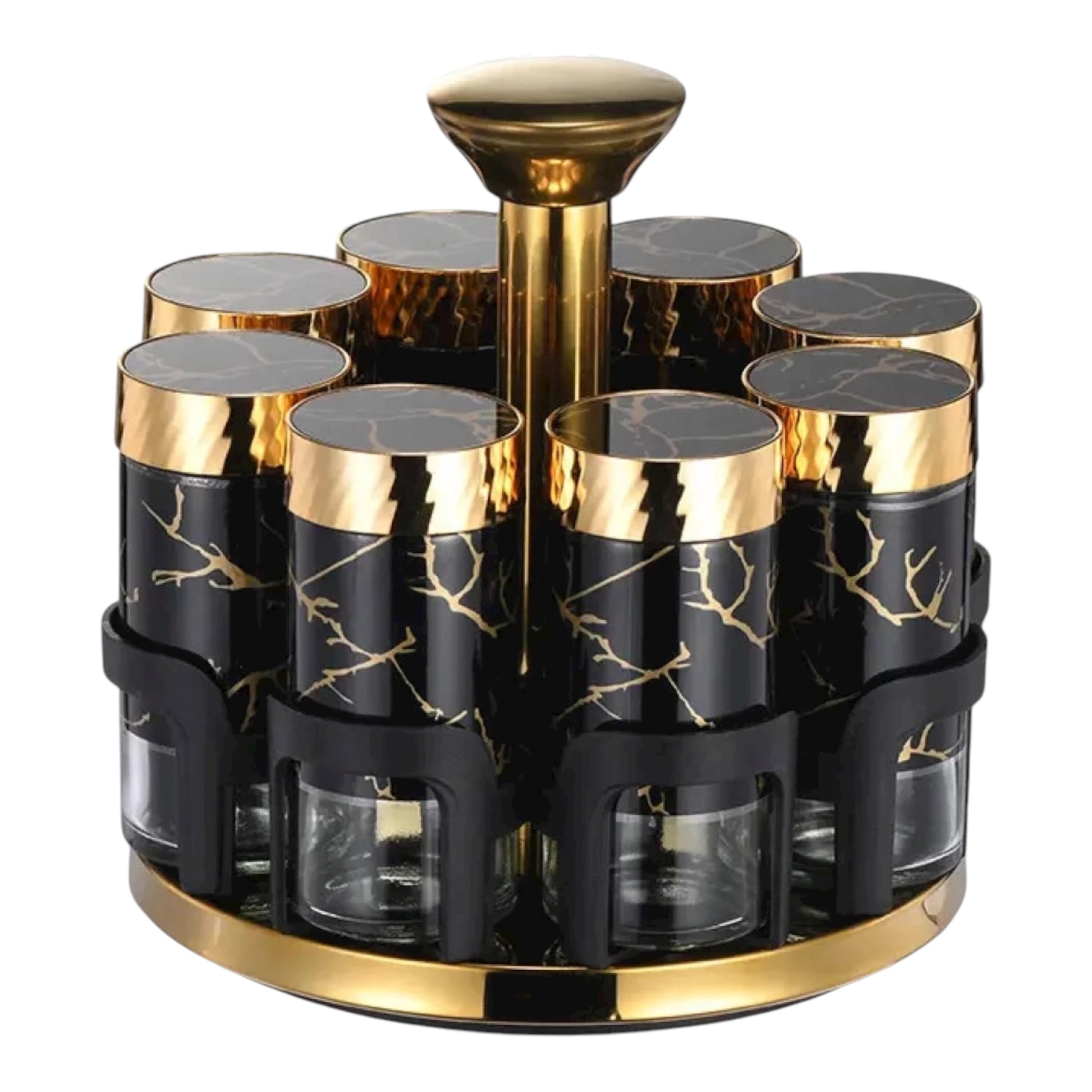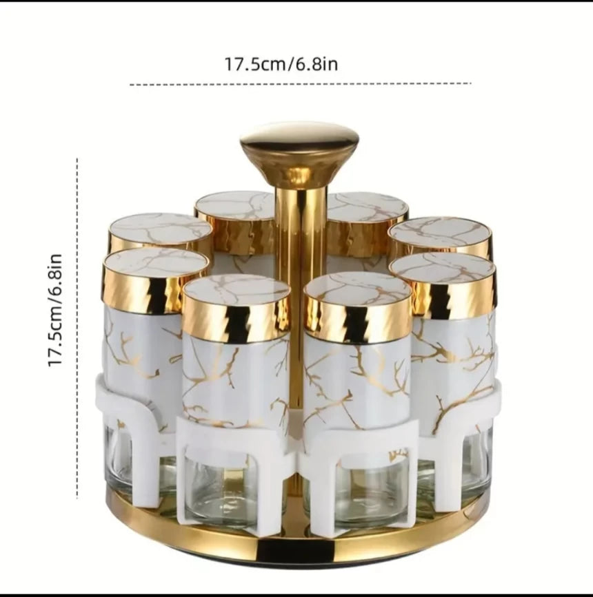 - Rotating Design: Smooth-turning rotating base for easy access to all jars; saves time and enhances cooking efficiency.