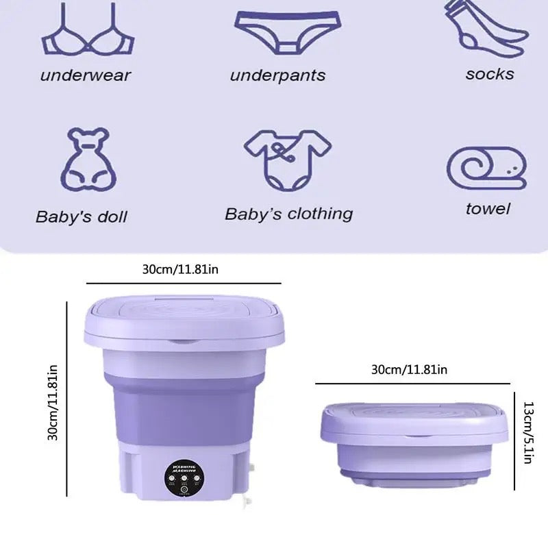 2. Foldable design and larger capacity: Foldable design, the folded size is 11.6 x 11.6 x 5.7 inches. With a wash capacity of 2.64 lbs/8 liters, it can wash 3 baby t-shirts or 6 underwear, or 10 pairs of socks. Ideal for travelers, tight spaces, and busy families with babies, pets, or the sick.